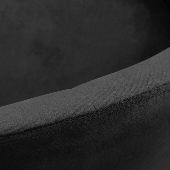 Luksusowe wykończenie sprawia, że mebel wpada w oko. Przyjemne w dotyku, welwetowe obicie w odcieniach czerni wraz z ozdobnym pikowaniem nadają mu wyjątkowego charakteru. Stabilna, okrągła podstawa w odcieniach złota dodaje elegancji, idealnie komponując się z welwetem. Estetyka wykonania, komfort użytkowania, ergonomicznie wyprofilowane oparcie i estetyczne pikowanie sprawiają, że krzesło spełni wymagania nawet najbardziej wymagających użytkowników.