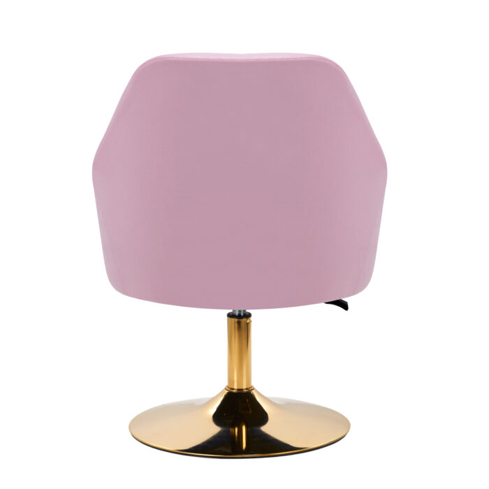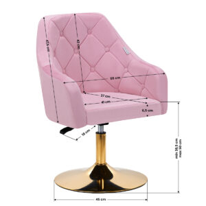 Ciekawy design nadaje krzesłu wyjątkowego charakteru. Przyjemne w dotyku, welwetowe obicie w odcieniach różu wraz z ozdobnym pikowaniem sprawiają, że będzie ozdobą każdego wnętrza. Stabilna, okrągła podstawa w odcieniach złota dodaje elegancji, idealnie komponując się z welwetem. Estetyka wykonania, komfortowo osadzone podłokietniki, ergonomicznie wyprofilowane oparcie i estetyczne pikowanie sprawiają, że krzesło spełni wymagania nawet najbardziej wymagających użytkowników.