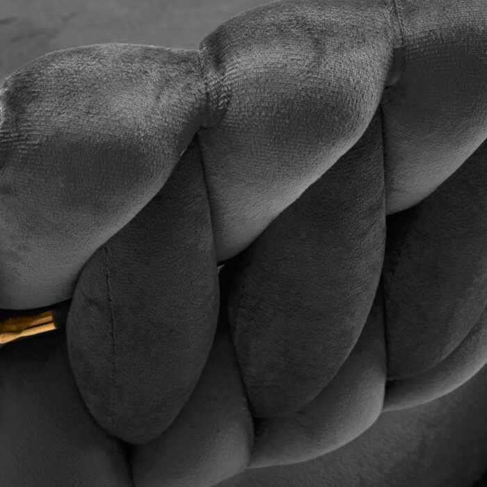 Wykończenie sprawia, że mebel wpada w oko. Przyjemne w dotyku, welwetowe obicie w odcieniach szarości nadaje mu wyjątkowego charakteru. Podstawa w odcieniach złota dodaje elegancji, idealnie komponując się z welwetem. Funkcjonalne koła zapewniają mobilność, ułatwiając przestawianie krzesła oraz poruszanie się po salonie w trakcie pracy. Staranność wykonania, komfort użytkowania oraz estetycznie przeplatany materiał na wyprofilowanym oparciu sprawiają, że krzesło spełni wymagania nawet najbardziej wymagających użytkowników.