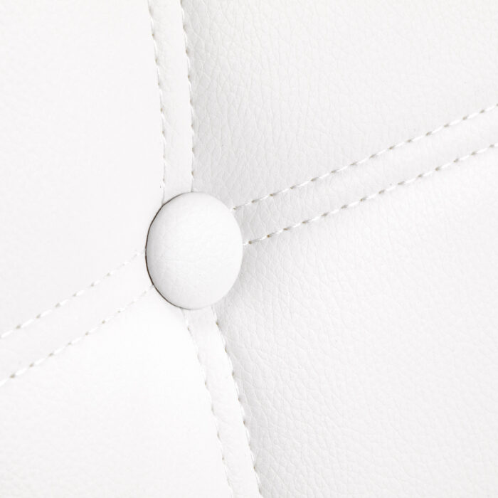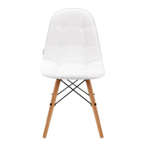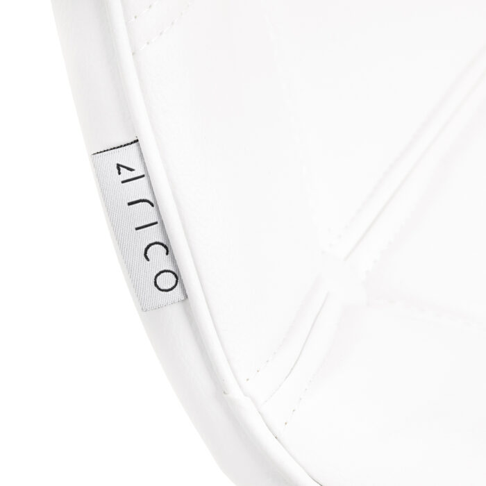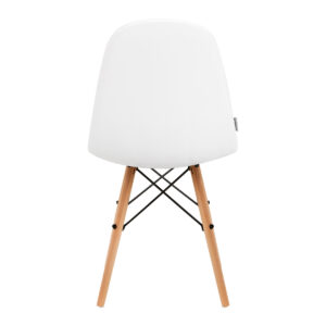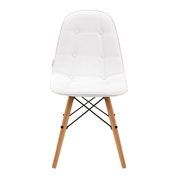 Siedzisko wypełnione jest gąbką i pokryte tapicerką z przyjemnej w dotyku skóry syntetycznej w odcieniach bieli, która jest bardzo łatwa do utrzymana w czystości. Niewielkie plamy i zabrudzenia można w prosty sposób usunąć lekko zwilżoną ściereczką. Estetyczne pikowanie oraz staranne przeszycia stanowią elegancki sznyt, a metalowy stelaż w odcieniach czerni dodaje meblowi stabilności. Matowo wykończone drewniane nóżki zakończono plastikowymi zabezpieczeniami, dodatkowo chroniącymi przed przypadkowym uszkodzeniem. Krzesło w stylu skandynawskim jest komfortowym meblem, który stanie się ozdobą recepcji każdego salonu kosmetycznego.