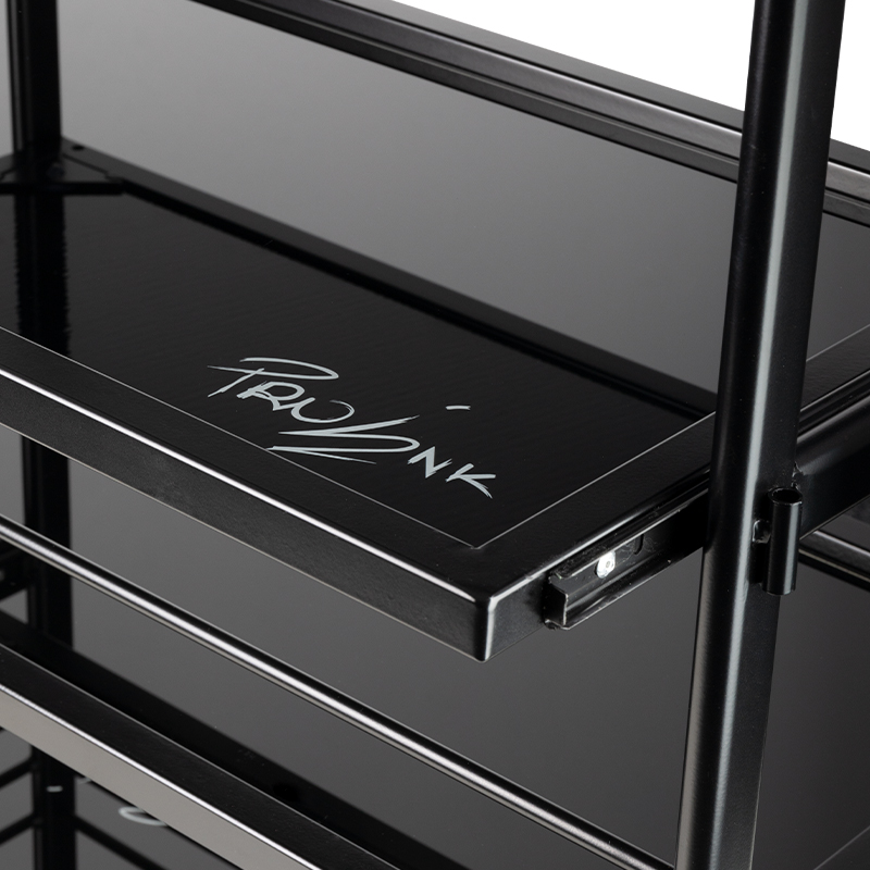 ASYSTOR PRO INK 1015 do przechowywania sprzętu do tatuażu. Dzięki solidnej stalowej konstrukcji, gwarantuje długotrwałą żywotność. Aż cztery szklane półki pomieszczą wszystko czego potrzebujesz podczas sesji. Posiada uchwyt na lampę.