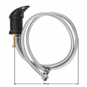 Bateria mieszakowa pasująca do większości myjni fryzjerskich dostępnych w Polsce. Bateria wykonana z mosiądzu, wykończona na czarno z wysoką odpornoiścią. Węże przyłączeniowe zabezpieczone oplotem stalowym garantującym trwałość.