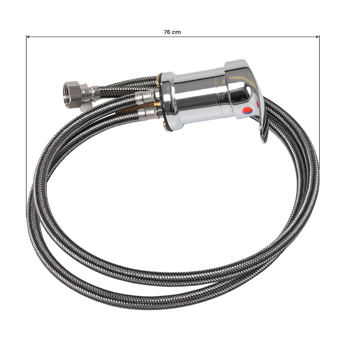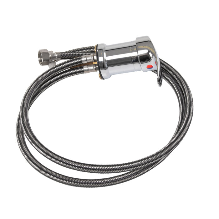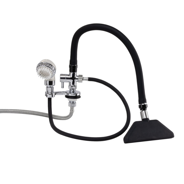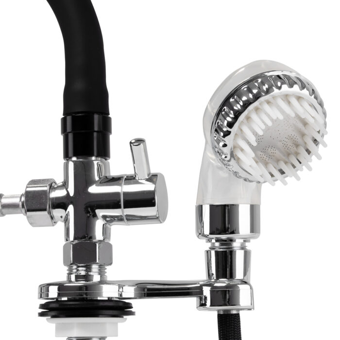 Bateria wodospad z mieszaczem, przeznaczona do myjni fryzjerskich, stanowi nieodzowny element profesjonalnego wyposażenia salonu. Ułatwia wygodne podłączenie wody do myjni i zapewnia komfort zarówno fryzjerowi, jak i klientowi. Dzięki dołączonym do zestawu wężom przyłączeniowym z oplotem stalowym, bateria charakteryzuje się wysoką trwałością i odpornością na ścieranie.