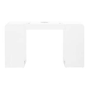 Estetyczny wygląd nadaje ponadczasowej elegancji biurku, które jest doskonałym dodatkiem do każdego profesjonalnego wnętrza. Zastosowane materiały wysokiej jakości nadają meblowi nowoczesny wygląd, zapewniając jednocześnie trwałość oraz łatwość czyszczenia. Minimalistyczna forma sprawia, że biurko nie tylko ułatwia przechowywanie produktów i akcesoriów, ale także stanowi estetyczny element, który podkreśla prostotę i elegancję przestrzeni salonów kosmetycznych.