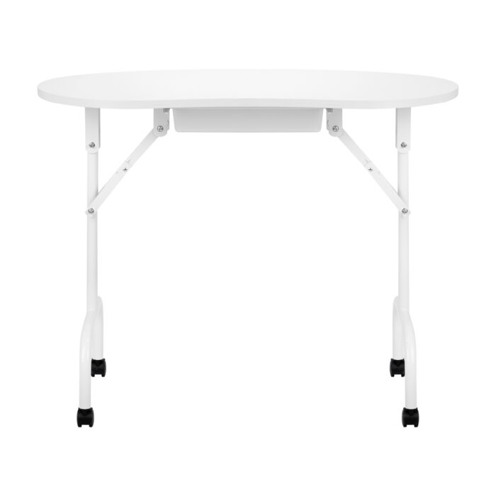 Niewielkie rozmiary złożonego stolika pozwalają na łatwe przechowywanie oraz komfortowy transport mebla, co jest kluczowe w przypadku usług mobilnych. Pod blatem znajduje się miejsce na kuwetę, w której można ułożyć wszelkie najpotrzebniejsze produkty i akcesoria. Taka szufladka zapewnia łatwy dostęp do niezbędnych podczas pracy narzędzi. Poduszka do manicure uefektywnia przeprowadzanie zabiegów, pozwalając klientowi na przyjęcie odpowiedniej, komfortowej pozycji. Biurko jest łatwe do składania, co znacząco wpływa na wygodę użytkowania. Dołączona do zestawu wytrzymała torba świetnie sprawdzi się w trakcie transportu mebla, ułatwiając jego przenoszenie oraz chroniąc przed uszkodzeniami.