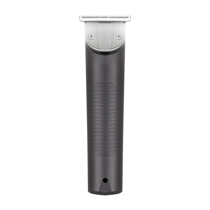 Maszynka o ergonomicznym kształcie została wykonana z matowego tworzywa sztucznego w odcieniach szarości, co gwarantuje nie tylko trwałość urządzenia, ale również łatwość jego czyszczenia. Doskonale leży w dłoni, zapewniając pełną kontrolę podczas strzyżenia. Stylowy panel dodaje elegancji, podkreślając jego nowoczesny charakter. Intuicyjnie rozmieszczone przyciski sprawiają, że korzystanie z trymera jest wyjątkowo komfortowe. To połączenie funkcjonalności i stylu sprawia, że trymer idealnie wpisuje się w gusta użytkowników, którzy cenią zarówno praktyczność, jak i elegancki wygląd.