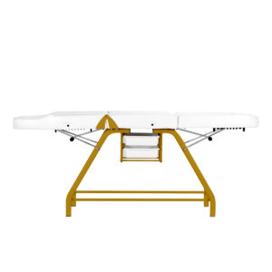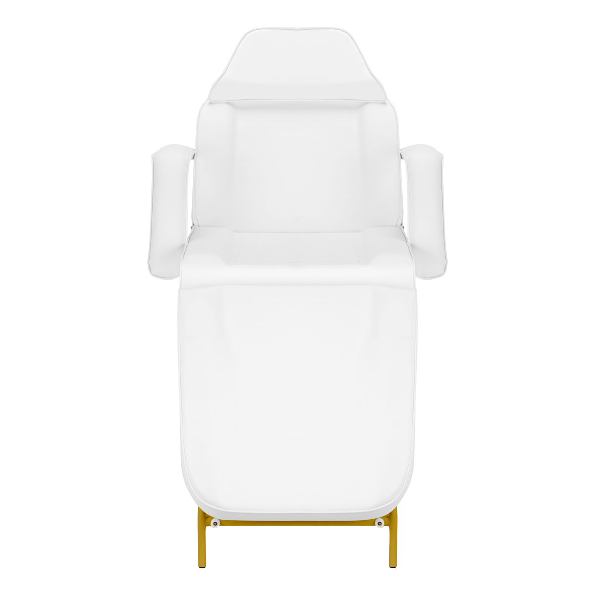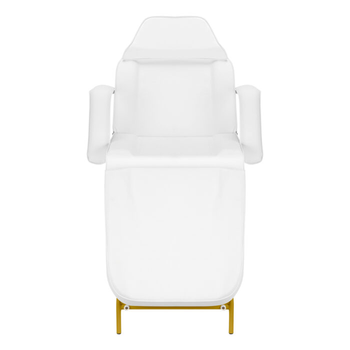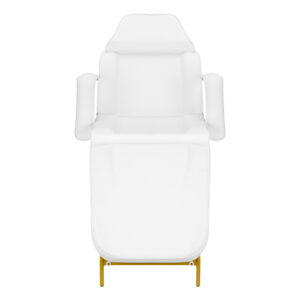 Podłokietniki gwarantują użytkownikowi odpowiednie podparcie i wygodę w trakcie zabiegów. W razie potrzeby mogą być w łatwy sposób zdjęte, dzięki czemu osoba wykonująca usługi ma łatwiejszy dostęp do obszarów, na których w danym momencie pracuje. Elementy te, dzielone w połowie, są ruchome, dlatego dobrze układają się przy zmianie pozycji oparcia.