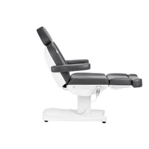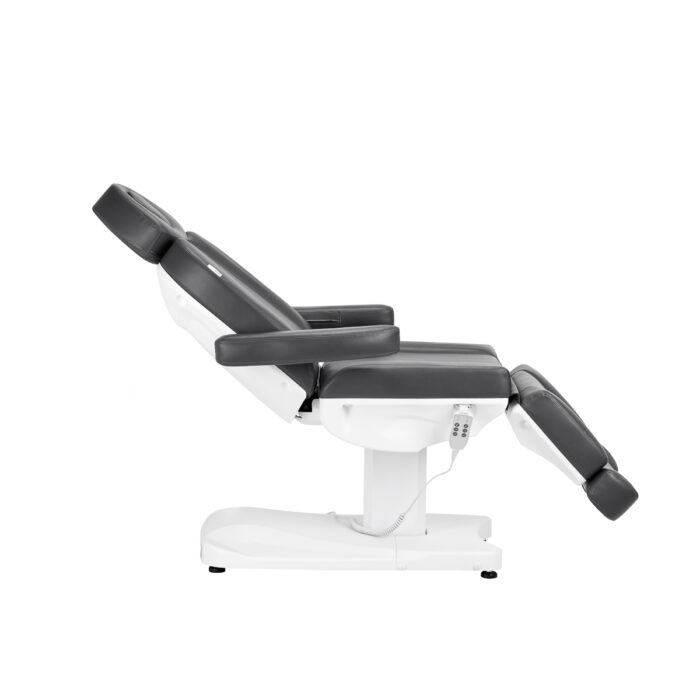 Elektryczny fotel kosmetyczny Azzurro 803D wyposażony został w 3 siłowniki, sterowane za pomocą pilota przewodowego lub dołączonego napędu nożnego. Cechuje się stabilnością, znaczną możliwością indywidualizacji oraz uniwersalnością, doskonale sprawdzi się więc w wielu specjalistycznych gabinetach.