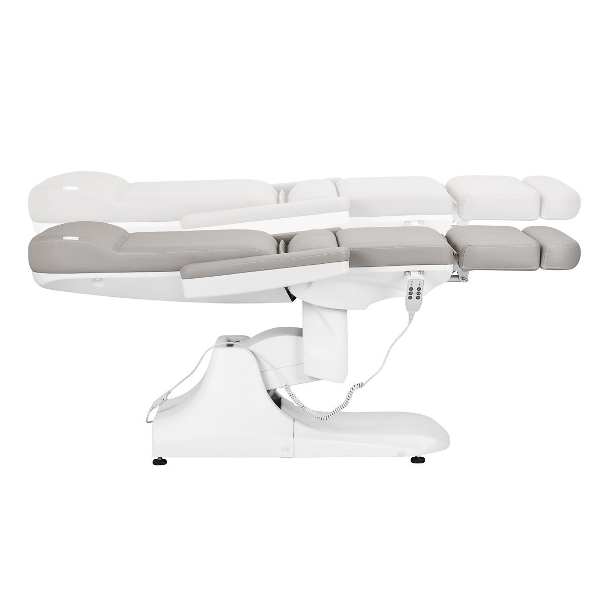Używając prostego, intuicyjnego pilota, fotel można w płynny sposób dostosowywać w trzech płaszczyznach – posiada regulację wysokości siedziska oraz kątów nachylenia oparcia i podnóżka. Umożliwia to swobodne ustawianie pozycji odpowiednio do zabiegu wykonywanego w danym momencie, co wpływa zarówno na komfort użytkownika, jak i osoby wykonującej usługi. Wymiary oraz szerokość regulacji pozwalają na łatwe korzystanie ze sprzętu osobom o różnym wzroście i ułatwiają dostosowanie go do potrzeb zarówno klienta, jak i osoby wykonującej zabieg.