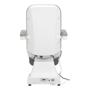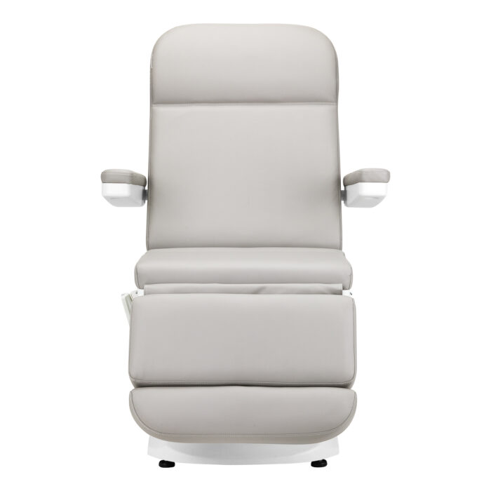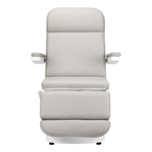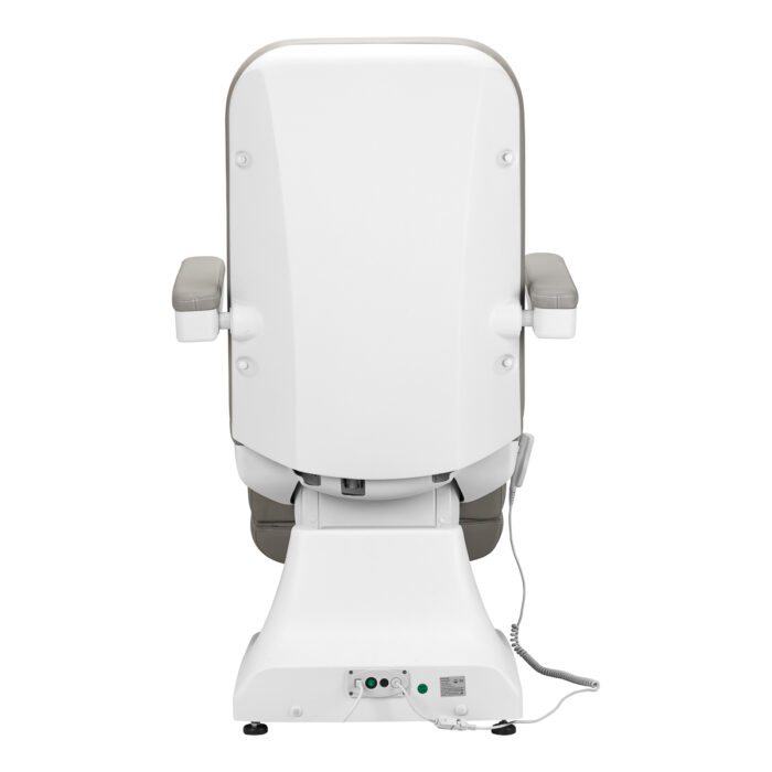 Szerokie siedzisko zapewnia wygodę w trakcie długich zabiegów. Podłokietniki są ruchome, można je ustawić w pozycji pionowej lub przełożyć o 180º, dzięki czemu ułatwiają sprawne zajęcie miejsca na fotelu i zapewniają komfortowy dostęp osobie wykonującej zabieg. W razie potrzeby możliwy jest ich łatwy i szybki demontaż.