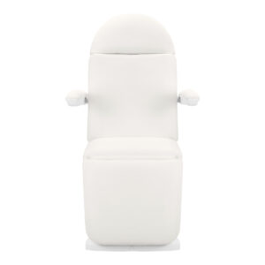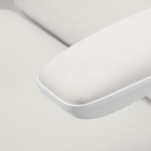 Zagłówek z możliwością wysunięcia o 20 cm pozwala dostosować fotel do wzrostu użytkownika, zapewniając stabilne podparcie głowy podczas zabiegów. Ruchome podłokietniki obracane w zakresie 180° ułatwiają zajmowanie miejsca na siedzisku oraz zapewniają wygodny dostęp osobie wykonującej zabieg. W razie potrzeby można je również łatwo zdemontować. Zastosowane udogodnienia podnoszą komfort użytkowania i wspierają ergonomiczną organizację pracy.