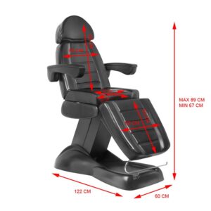 Fotel kosmetyczny, świetnie sprawdza się w gabinetach kosmetycznych i salonach SPA, doskonały do zabiegów kosmetycznych, pedicure, wizażu i masażu. Posiada elektrycznie sterowane elektrycznie :