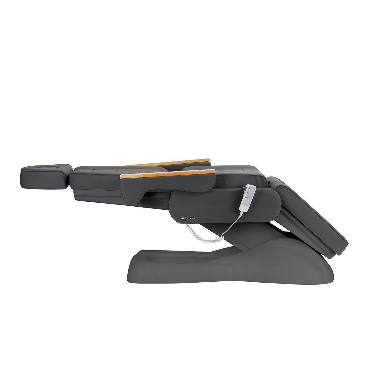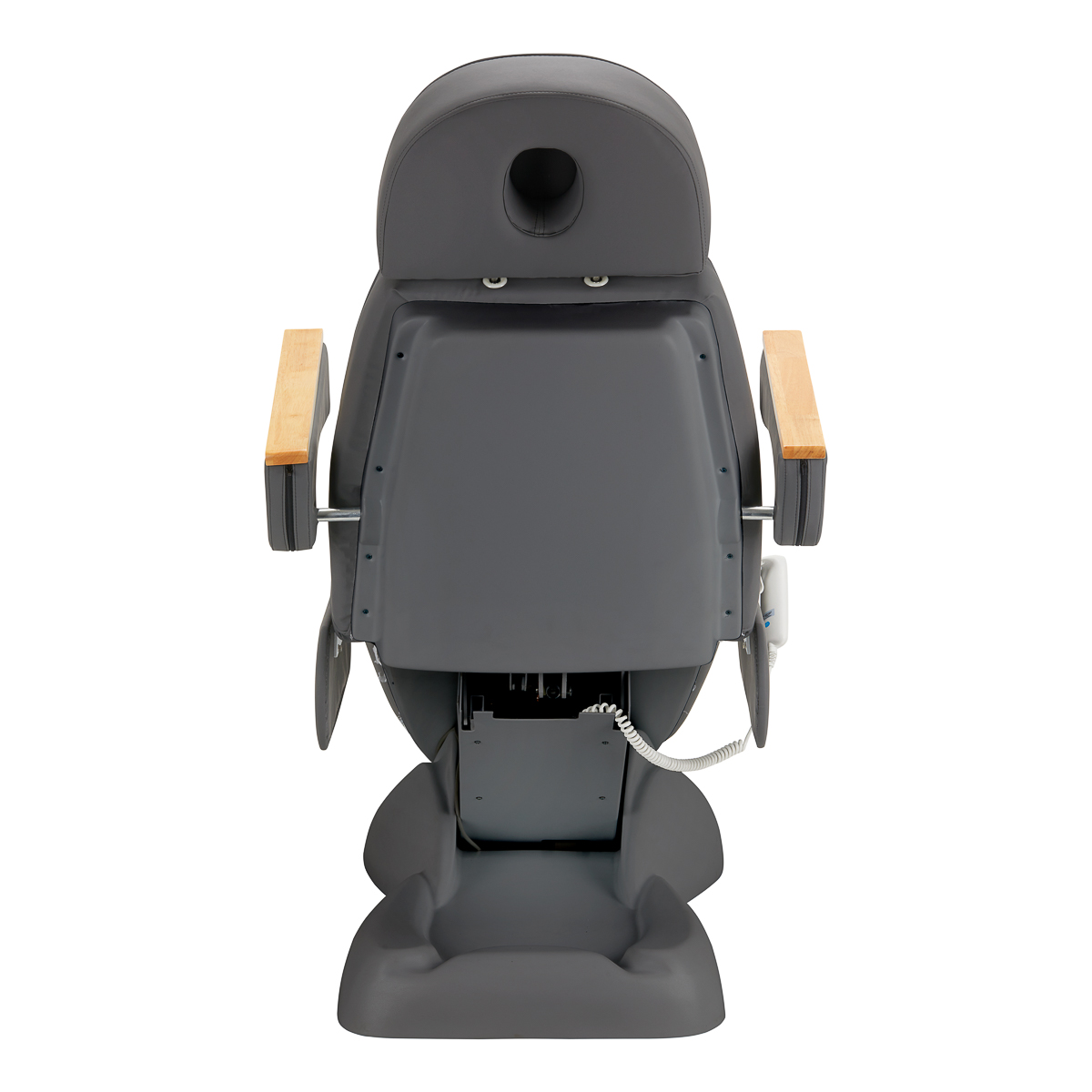 Używając intuicyjnego pilota, fotel można w płynny sposób dostosowywać w trzech płaszczyznach – posiada regulację wysokości i kątów nachylenia oparcia oraz podnóżka. Pozwala to swobodnie ustawiać pozycję odpowiednio do zabiegu wykonywanego w danym momencie, co wpływa zarówno na komfort użytkownika, jak i osoby wykonującej usługi.