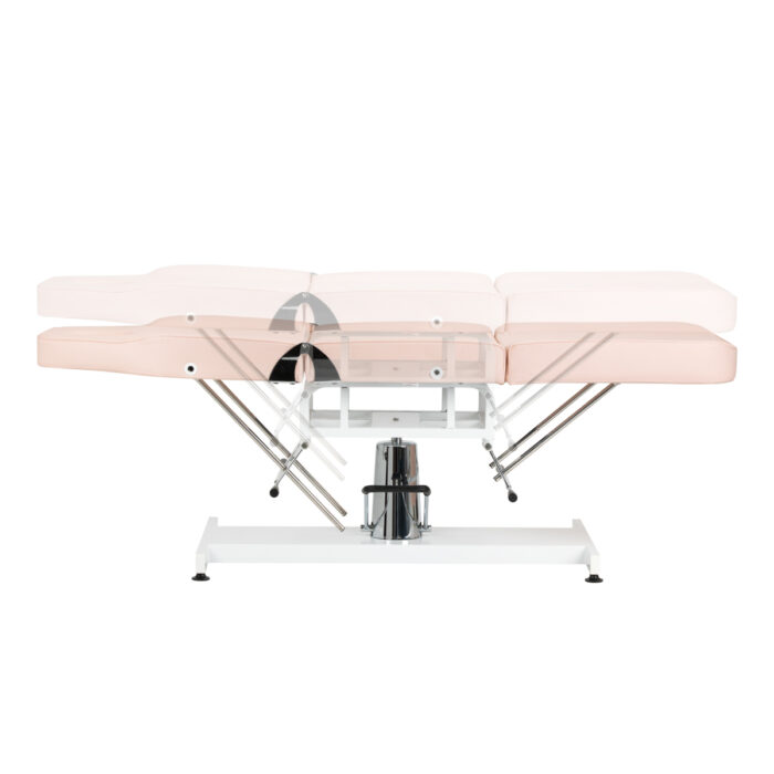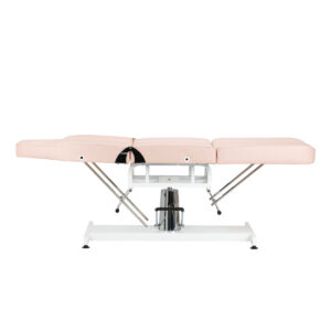 Wysokość fotela można dostosowywać w zakresie 65-79 cm bez użycia rąk za pomocą pompy hydraulicznej. Pozwala to na komfortowe korzystanie ze sprzętu osobom o różnym wzroście i umożliwia dostosowanie go do indywidualnych potrzeb zarówno klienta, jak i osoby wykonującej zabieg. Zastosowany mechanizm jest bardzo trwały i niezawodny. Dzięki otworowi w zagłówku, który jest ukryty pod odpowiednio wyprofilowaną poduszką, fotel doskonale sprawdzi się również przy zabiegach przeprowadzanych na plecach, takich jak masaże.