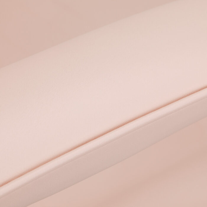 Fotel wypełniony jest pianką o odpowiedniej twardości i pokryty półmatową imitacją skóry w odcieniach różu. Dzięki użyciu takiego materiału, sprzęt jest komfortowy w użytkowaniu, odporny na wilgoć oraz łatwy w czyszczeniu. Odpowiednio wyprofilowane obszycia nadają ergonomiczny kształt siedzisku. Solidna konstrukcja gwarantuje trwałość oraz stabilność. Prosty design i klasyczna kolorystyka pozwalają mu wpasować się w każde wnętrze.
