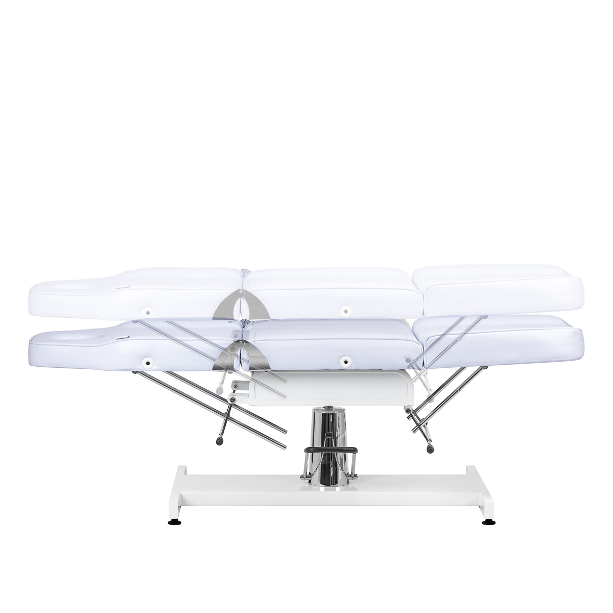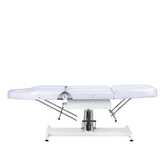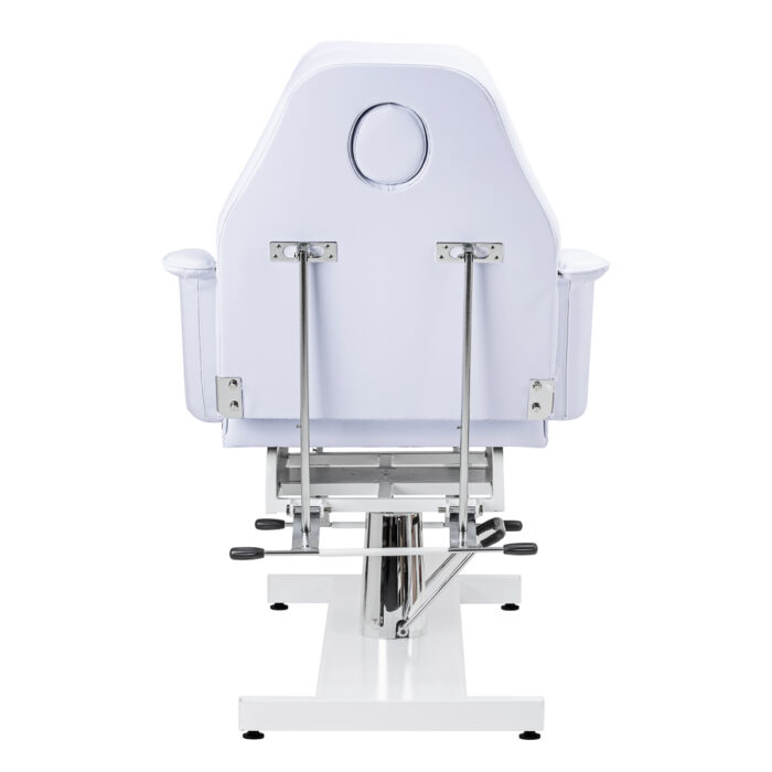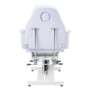 Wysokość fotela można dostosowywać w zakresie 62-75 cm bez użycia rąk za pomocą pompy hydraulicznej. Pozwala to na komfortowe korzystanie ze sprzętu osobom o różnym wzroście i umożliwia dostosowanie go do indywidualnych potrzeb zarówno klienta, jak i osoby wykonującej zabieg. Zastosowany mechanizm jest bardzo trwały i niezawodny. Dzięki otworowi w zagłówku, który jest ukryty pod odpowiednio wyprofilowaną poduszką, fotel doskonale sprawdzi się również przy zabiegach przeprowadzanych na plecach, takich jak masaże.