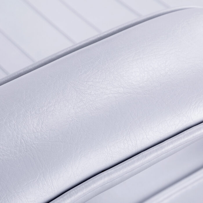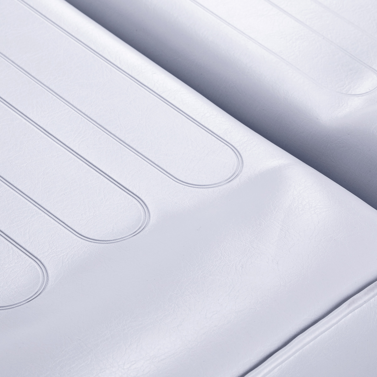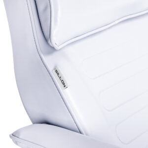 Fotel wypełniony jest pianką o odpowiedniej twardości i pokryty półmatową imitacją skóry w odcieniach bieli. Dzięki użyciu takiego materiału, sprzęt jest komfortowy w użytkowaniu, odporny na wilgoć oraz łatwy w czyszczeniu. Odpowiednio wyprofilowane obszycia nadają ergonomiczny kształt siedzisku. Solidna konstrukcja gwarantuje trwałość oraz stabilność. Prosty design i klasyczna kolorystyka pozwalają mu wpasować się w każde wnętrze.