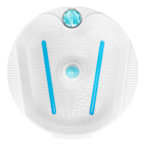 Fotel kosmetyczny do pedicure z masażerem. Wygodne siedzisko regulowane w płaszczyźnie góra-dół, drewniany podest na brodzik, podnóżek do pedicure z opcją regulacji wysokości. Siedzisko i podnóżek w obiciu z wysokiej jakości ekoskóry.