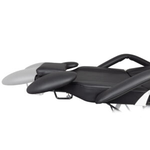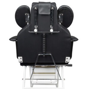 Fotel posiada ręczną regulację podnóżka, oparcia oraz podparcia rąk dla wykonywującego zabieg. Zastosowane podparcie rąk jest niezwykle praktycznym rozwiązaniem nie spotykamym w innych fotelach. Wyposażony w wygodną poduszkę dla klienta oraz podręczne kuwety na umieszczenie niezbędnych akcesoriów.