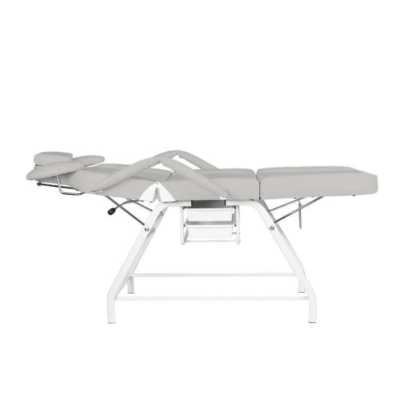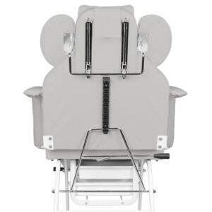 Fotel posiada ręczną regulację podnóżka, oparcia oraz podparcia rąk dla wykonywującego zabieg. Zastosowane podparcie rąk jest niezwykle praktycznym rozwiązaniem nie spotykamym w innych fotelach. Wyposażony w wygodną poduszkę dla klienta oraz podręczne kuwety na umieszczenie niezbędnych akcesoriów.