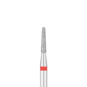 Frez diamentowy stożek zaokrąglony z drobnym nasypem umożliwia zarówno delikatne szlifowanie skóry, paznokci, jak i usuwanie drobnych zrogowaceń w wałach paznokciowych.