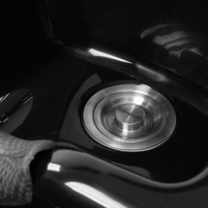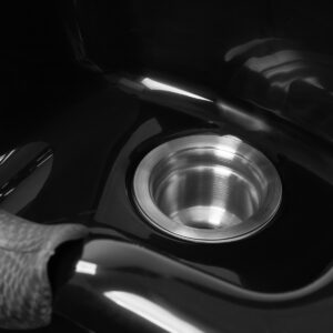 Głęboka misa w kolorze czerni została wykonana z wytrzymałego tworzywa sztucznego, co zapewnia jej odporność na uszkodzenia i łatwość utrzymania w czystości. Jej przemyślana konstrukcja skutecznie ogranicza rozchlapywanie wody i preparatów podczas mycia. Ergonomiczny kształt i wyprofilowany kołnierz z silikonową nakładką zapewniają klientowi wygodne ułożenie głowy. Praktyczne miejsce na słuchawkę natryskową sprzyja lepszej organizacji stanowiska, a korek z sitkiem ułatwia kontrolę przepływu wody i utrzymanie czystości oraz higieny.