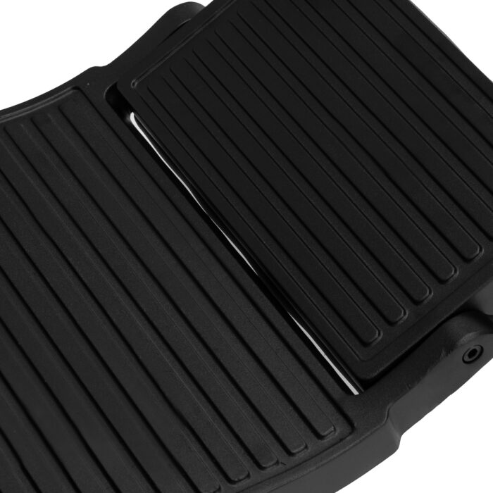 Stabilna konstrukcja zapewnia bezpieczeństwo i długą żywotność mebla. Siedzisko wypełnione pianką odporną na odkształcenia oraz obicie z miękkiej skóry syntetycznej zapewniają meblowi trwałość i wygodę. Odporne na wilgoć materiały są nie tylko wytrzymałe, ale również łatwe w czyszczeniu. Czarna tapicerka w połączeniu z czarną ramą nadaje fotelowi nowoczesny i profesjonalny wygląd, a minimalistyczny styl pozwala mu wpasować się w wystrój każdego salonu barberskiego.
