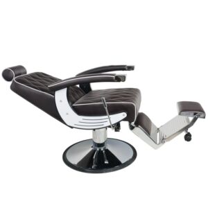 Stylowy fotel barberski Gabbiano Imperial to nowoczesny mebel łączący elegancję z funkcjonalnością. Wyposażony w podnośnik hydrauliczny, regulowany podnóżek i oparcie, umożliwia idealne dopasowanie do każdego zabiegu, zapewniając komfort zarówno klientowi, jak i barberowi. Starannie wykonane detale i estetyczne wykończenie sprawiają, że fotel nie tylko podnosi standard usług, ale także stanowi efektowny element wystroju salonu.