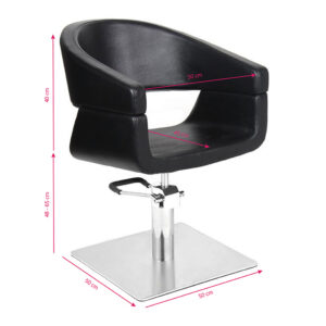 Nowoczesny fotel fryzjerski o wyjątkowym designie. Bardzo wygodny, idealnie pasujący do nowoczesnych salonów. Specjalnie wyprofilowany, by zapewnic klientowi wygodną pozycję podczas zabiegu. Regulowany w płaszczyźnie pionowej. Bardzo stabilny i solidny. Obicie z wysokiej jakości ekoskóry. Kolor czarny.