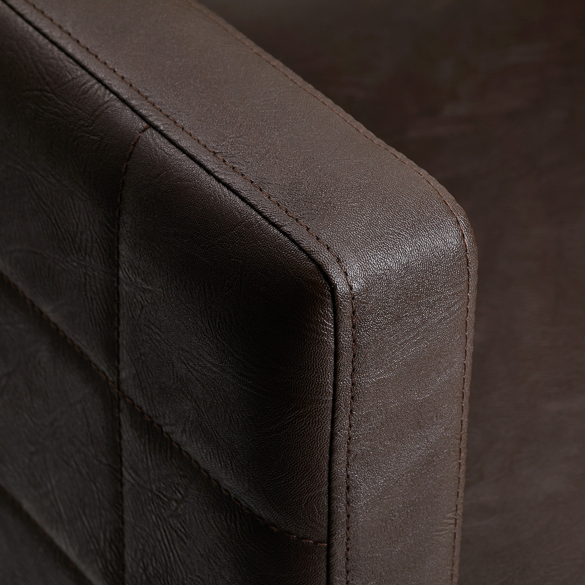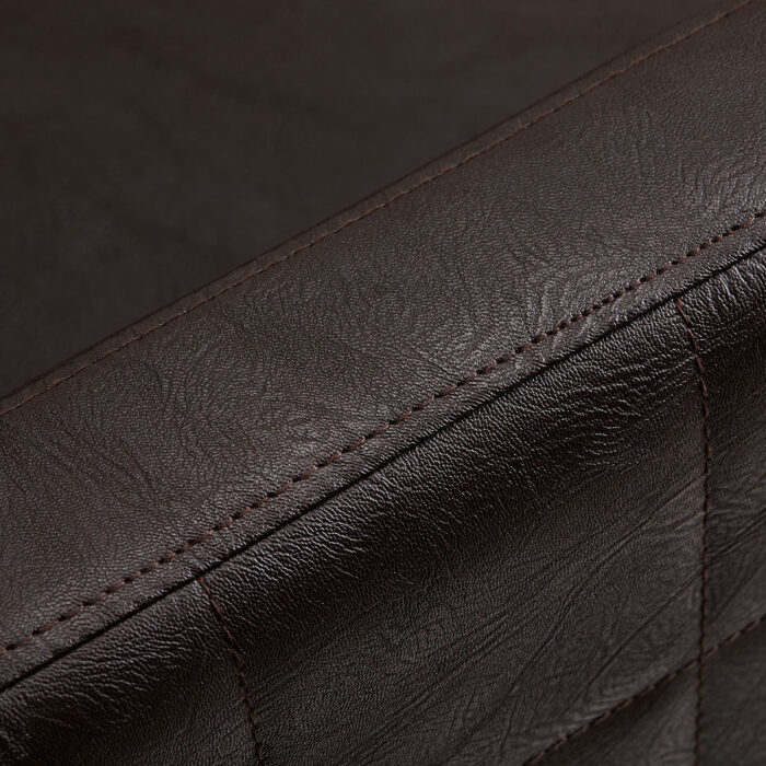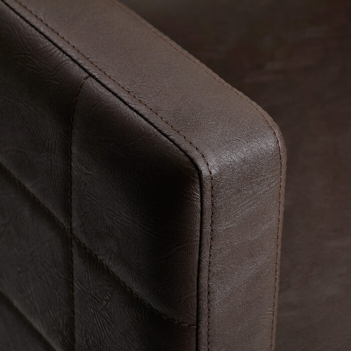 Wygodny fotel wypełniony jest trwałą i odporną na odkształcenia pianką, co zapewnia wieloletnie użytkowanie, wysoki komfort oraz wygodę nawet podczas wielogodzinnych zabiegów. Obicie wykonane jest z przyjemnej w dotyku skóry syntetycznej, a zastosowanie takiego materiału sprawia, że sprzęt jest odporny na wilgoć, wytrzymały oraz bardzo łatwy w czyszczeniu. Pokrycie w odcieniach brązu wraz z ciekawymi wizualnie elementami nadają mu wyjątkowego charakteru. Sprzęt wyróżnia elegancki design, który sprawia, że fotel będzie doskonale prezentować się w wielu wnętrzach salonów fryzjerskich.