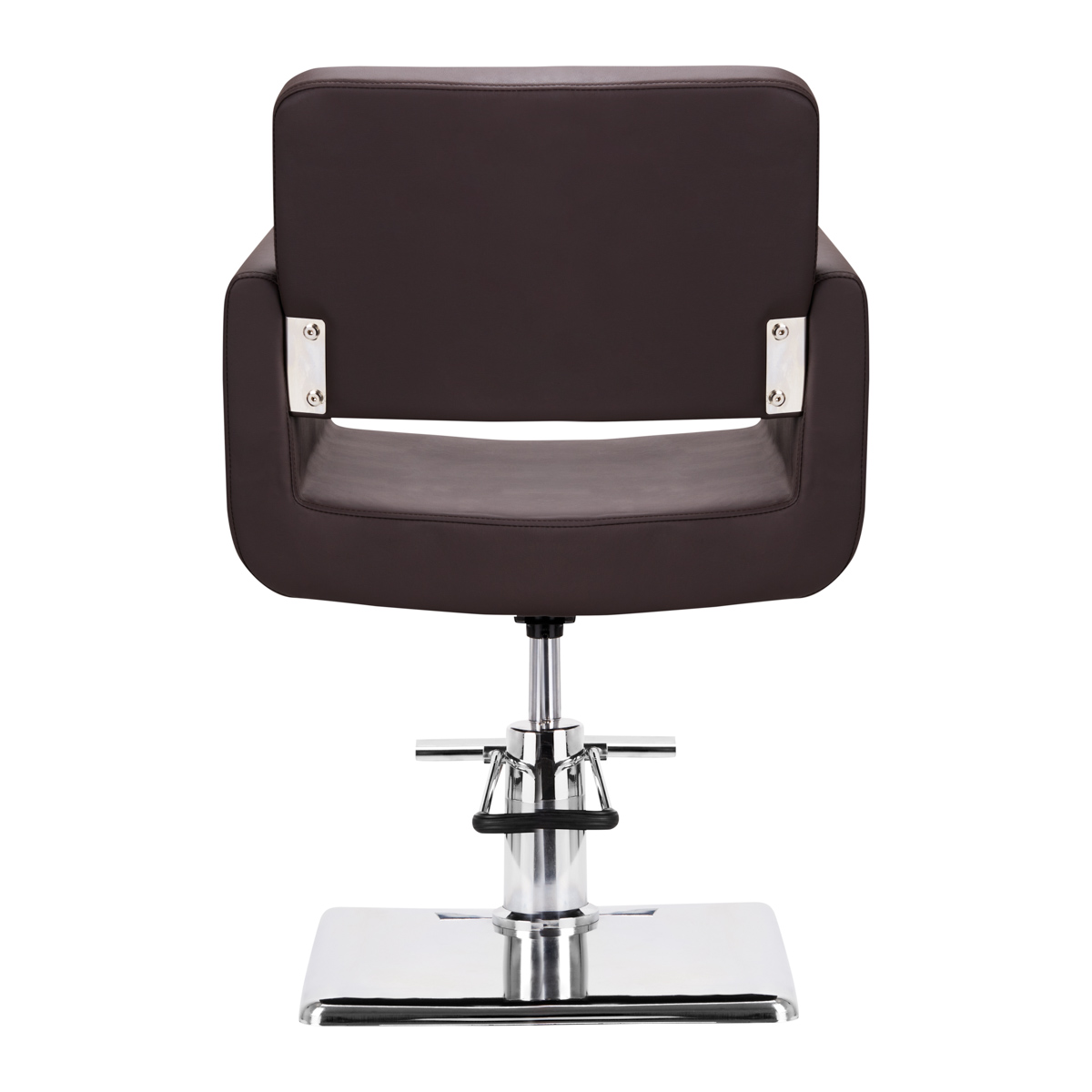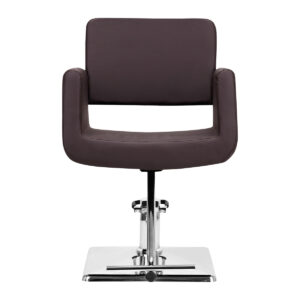 Solidna, kwadratowa podstawa zapewnia stabilność podczas użytkowania, a jej polerowana, gładka powierzchnia nadaje elegancki wygląd. Siedzisko wypełnione trwałą, odporną na odkształcenia pianką oraz obite przyjemną w dotyku skórą syntetyczną jest wytrzymałe, odporne na wilgoć i łatwe do czyszczenia. Elegancki brąz podkreśla ponadczasowy design, który harmonijnie wpisuje się zarówno w nowoczesne, jak i tradycyjne wnętrza salonów fryzjerskich.