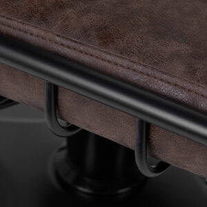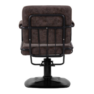 Funkcjonalny mebel w stylu loftowym wypełniony jest trwałą, odporną na odkształcenia pianką, z kolei obicie wykonano z przyjemnej w dotyku skóry syntetycznej w odcieniach brązu. Zastosowane materiały zapewniają komfortowe użytkowanie mebla przez długi czas i sprawiają, że sprzęt jest odporny na wilgoć, wytrzymały oraz łatwy do czyszczenia. Metalowe elementy w odcieniach czerni nadają mu wyraz surowej elegancji. Nowoczesny fotel fryzjerski Gabbiano Katania Loft wyróżnia minimalistyczny design, który nadaje mu wyjątkowy charakter i sprawia, że fotel będzie doskonale prezentować się w wielu salonach fryzjerskich.
