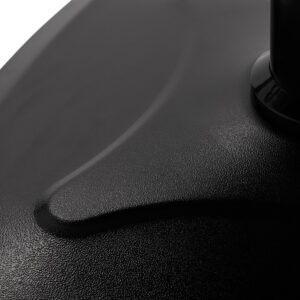 Trwały podnośnik hydrauliczny umożliwia łatwą regulację wysokości, pozwalając sprawnie dostosować poziom siedziska w granicach 44-56 cm – nawet w momencie, gdy klient siedzi na fotelu. Gwarantuje to bardziej ergonomiczną pracę, umożliwiając swobodne dopasowanie poziomu siedziska do wzrostu zarówno klienta, jak i fryzjera. Wyprofilowane oparcie obite skórą syntetyczną pozwala na zajęcie dogodnej pozycji. Zapewnia tym samym doskonałe wsparcie dla pleców, co ma znaczenie zwłaszcza w przypadku zabiegów trwających wiele godzin. Dużym plusem jest otwór pomiędzy oparciem a siedziskiem, który ułatwia zachowanie czystości w salonie. Pozwala w łatwy sposób wymieść włosy z każdego zakamarka fotela, oszczędzając przy tym czas przygotowania stanowiska pracy pomiędzy klientami.