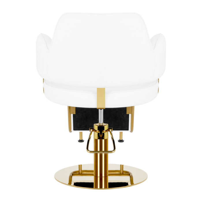 Elegancki fotel fryzjerski Gabbiano Linz NQ wyposażony jest w trwały podnośnik hydrauliczny. Wyraźnie usprawnia wykonywanie różnorodnych zabiegów a jednocześnie zapewnia wysoki komfort użytkowania. Klasyczna kolorystyka, prosty design oraz ozdobne polerowane elementy w odcieniach złota nadają mu gustowny wygląd.