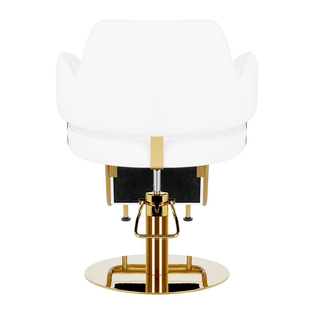 Regulację wysokości umożliwia trwały podnośnik hydrauliczny, który pozwala płynnie dostosować poziom siedziska w granicach 46-62 cm – nawet w momencie, gdy klient siedzi na fotelu. Gwarantuje to bardziej ergonomiczną pracę, zapewniając możliwość swobodnego dopasowania poziomu fotela do wzrostu zarówno klienta, jak i fryzjera. Odpowiednio wyprofilowane oparcie obite jest skórą syntetyczną i pozwala na zajęcie dogodnej pozycji. Zapewnia to doskonałe wsparcie dla pleców, co ma znaczenie zwłaszcza w przypadku zabiegów trwających wiele godzin. Dużym plusem jest otwór pomiędzy oparciem a siedziskiem. Ułatwia on zachowanie czystości w salonie, pozwala w łatwy sposób wymieść włosy z każdego zakamarka fotela, oszczędzając przy tym czas przygotowania stanowiska pracy pomiędzy klientami.