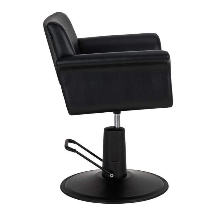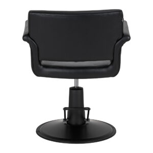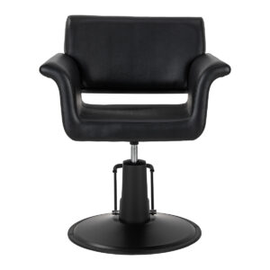 Fotel fryzjerski Gabbiano Lucca łączy nowoczesną prostotę z wygodą codziennego użytkowania. Okrągła, czarna podstawa gwarantuje stabilność, a tapicerka ze skóry syntetycznej w odcieniu czerni zapewnia komfort podczas zabiegów. Trwałe, odporne na wilgoć materiały sprawiają, że model ten jest nie tylko komfortowy, ale i wyjątkowo łatwy w pielęgnacji, dzięki czemu zachowuje estetyczny wygląd na lata. Charakterystycznie wygięte na zewnątrz podłokietniki nadają fotelowi elegancki wygląd, a jednocześnie wspierają wygodną pozycję klienta. To uniwersalny model, który doskonale wpisze się zarówno w nowoczesne, jak i bardziej klasyczne aranżacje, podkreślając profesjonalny styl salonu.