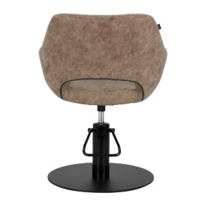 Solidna, płaska podstawa w kształcie koła gwarantuje stabilność w trakcie użytkowania. Gładka powierzchnia o matowym wykończeniu sprawia, że element ten jest łatwy do utrzymania w czystości oraz wygląda elegancko. Wygodne siedzisko z wypełnieniem z pianki zapewnia wysoki komfort użytkowania, nawet podczas wielogodzinnych zabiegów. Podłokietniki znajdują się na odpowiedniej wysokości, dzięki czemu pozwalają na prawidłowe ułożenie barków klienta – sprawia to, że nie chowa głowy w ramionach ani się nie garbi – wyraźnie ułatwiając precyzyjne wykonywanie zabiegów, w tym strzyżenie. Wyposażenie fotela w mechanizm pełnego obrotu sprawia, że praca fryzjera staje się bardziej efektywna i wygodna.