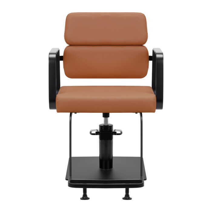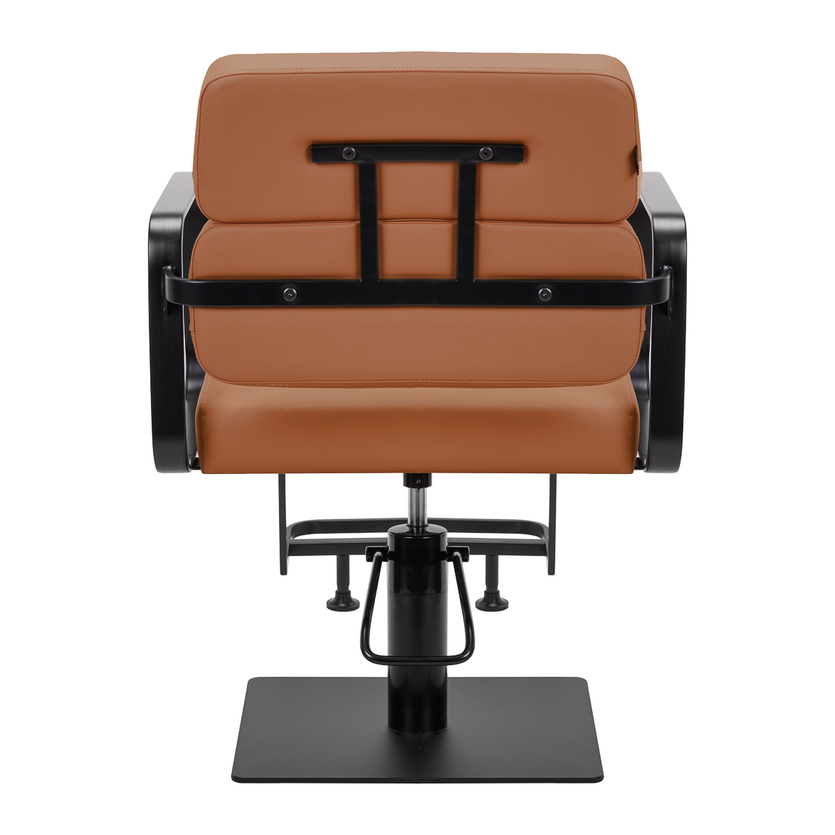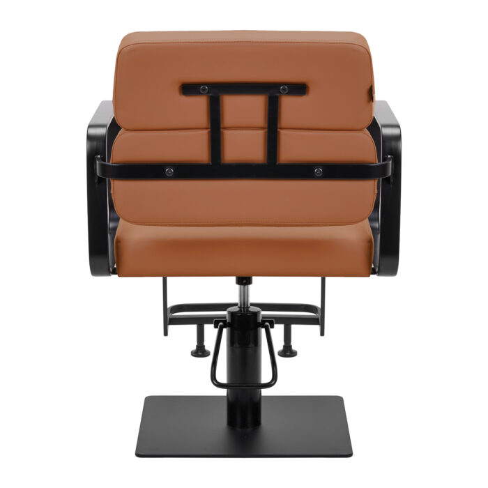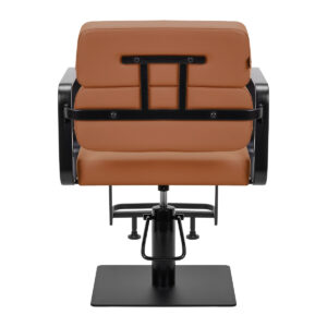 Trwały podnośnik hydrauliczny pozwala dostosować poziom siedziska w granicach 49-61 cm – nawet w momencie, gdy klient siedzi na fotelu. Zapewnia bardziej ergonomiczną pracę, umożliwiając dopasowanie poziomu siedziska do wzrostu zarówno klienta, jak i fryzjera. Ciekawe wizualnie oparcie pozwala na zajęcie dogodnej pozycji, zapewniając doskonałe wsparcie pleców, co ma znaczenie zwłaszcza w przypadku wielogodzinnych zabiegów. Dużym plusem tego modelu jest otwór pozostawiony pomiędzy oparciem a siedziskiem. Ułatwia on zachowanie czystości w salonie, pozwalając w łatwy sposób wymieść włosy z każdego zakamarka fotela. Pozwala to usprawnić przygotowanie stanowiska pracy pomiędzy klientami.