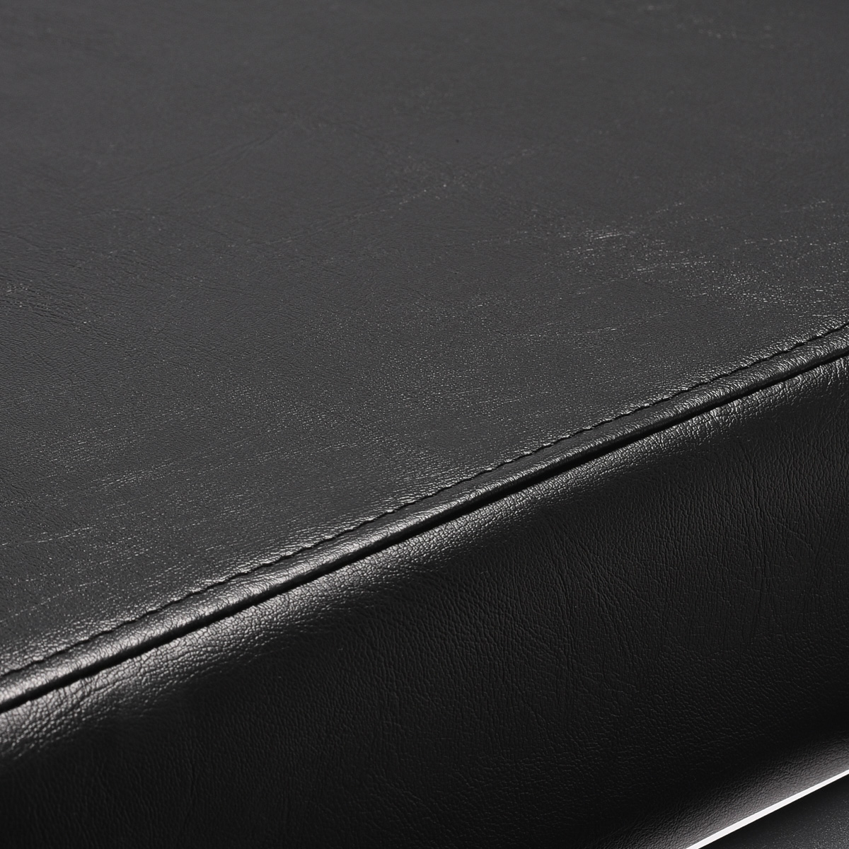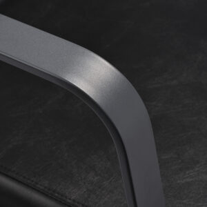 Wypełnienie z trwałej, odpornej na odkształcenia pianki oraz obicie wykonane z przyjemnej w dotyku skóry syntetycznej zapewniają trwałość mebla i jego komfortowe użytkowanie przez długi czas. Sprawiają również, że sprzęt jest odporny na wilgoć, wytrzymały oraz łatwy do czyszczenia. Pokrycie w odcieniach czerni nadaje mu wyjątkowego charakteru. Sprzęt wyróżnia nowoczesny design, który sprawia, że fotel będzie doskonale prezentować się w wielu profesjonalnych salonach.