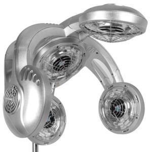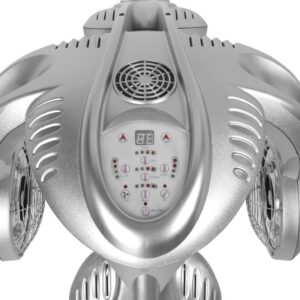 Futurystyczna obudowa wykonana z trwałego tworzywa sztucznego w odcieniach srebra nadaje urządzeniu nowoczesnego i wyjątkowego wyglądu, dzięki czemu wpasuje się w większość wnętrz. Dodatkowo jest trwały i łatwy do czyszczenia. Stabilność zapewnia czteroramienna podstawa, która jest wyposażona w kółka, gwarantujące mobilność. Regulowany w zakresie 142-162 cm statyw gwarantuje komfortową pracę i dostosowanie urządzenia do indywidualnych potrzeb.