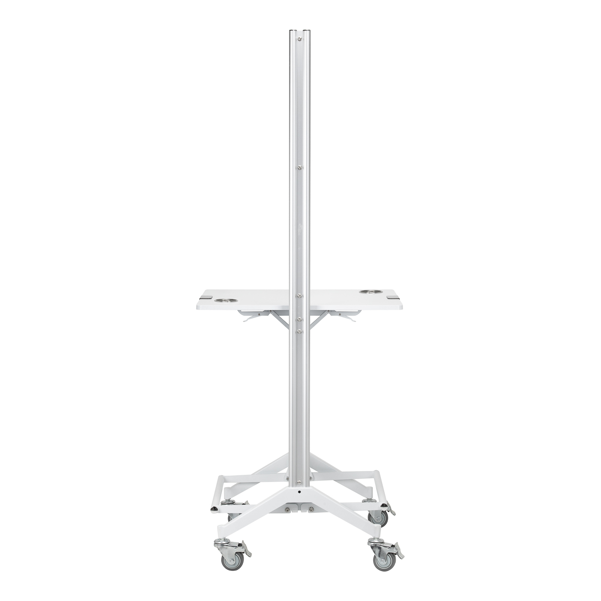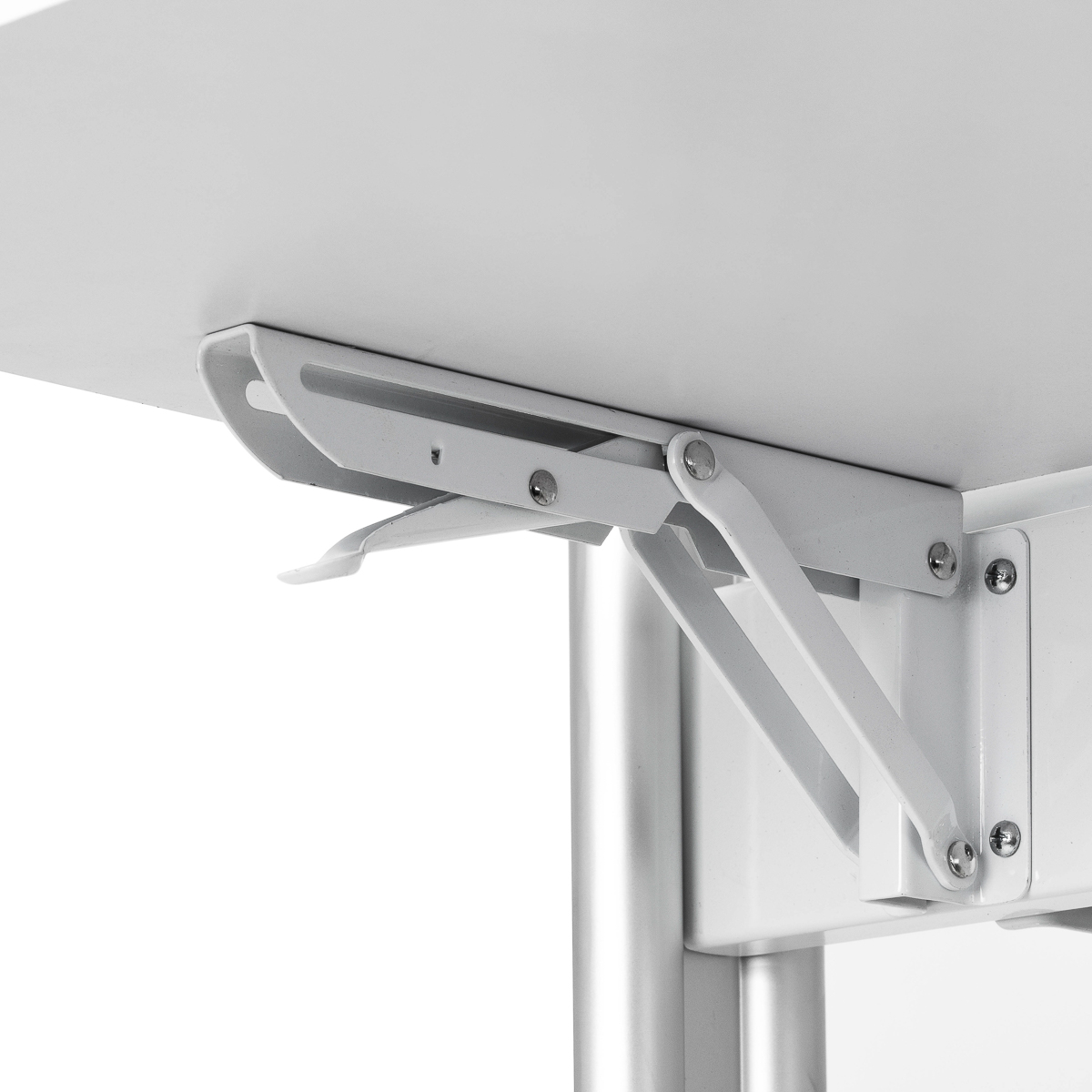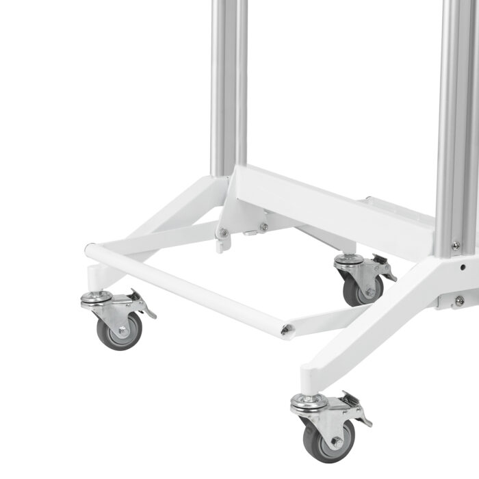 Praktyczna składana półka na wysokości 90 cm to jedna z głównych zalet konsoli MI-03, która pozwala zaoszczędzić miejsce, a jednocześnie oferuje funkcjonalną przestrzeń do przechowywania. Dodatkowo, dwustronna konstrukcja oraz kółka z możliwością blokowania zapewniają mobilność i łatwość w przestawianiu konsoli. Otwory w półce służą jako uchwyt na suszarkę, co czyni ją jeszcze bardziej praktyczną i dostosowaną do potrzeb profesjonalistów w branży fryzjerskiej.
