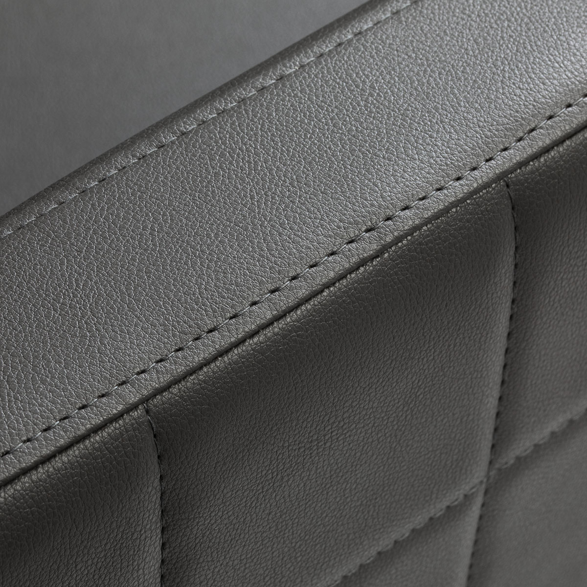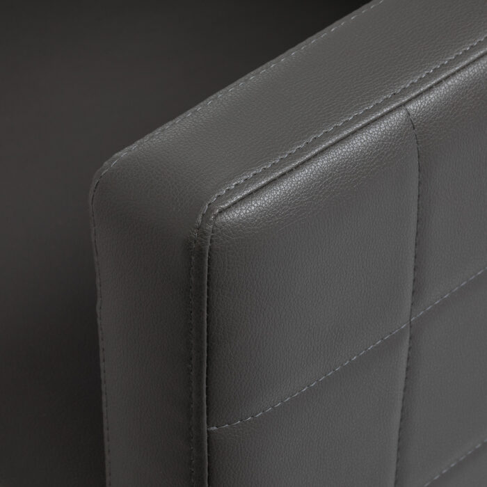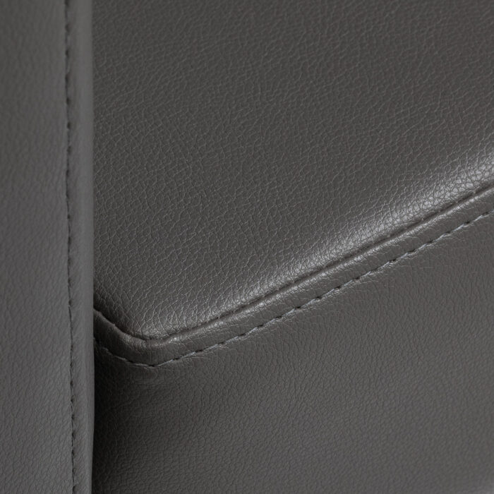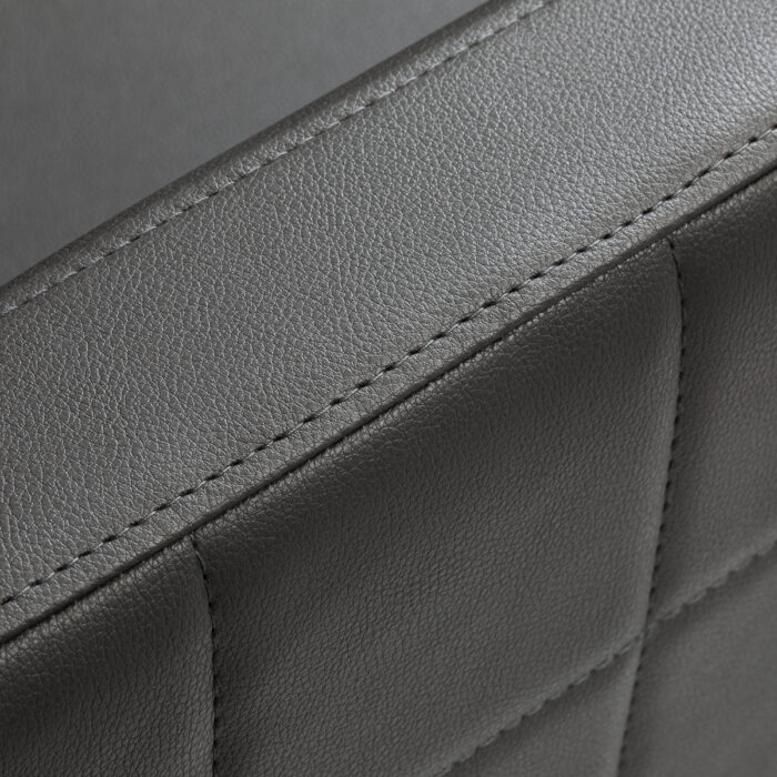 Ergonomicznie wyprofilowany fotel, wypełniony trwałą i odporną na odkształcenia pianką, zapewnia wysoki komfort użytkowania zarówno klientowi, jak i osobie wykonującej zabieg. Tapicerowane podłokietniki z dekoracyjnym przeszyciem bocznym umożliwiają naturalne ułożenie rąk i barków, wspierając prawidłową postawę podczas siedzenia. Konstrukcja fotela została zaprojektowana tak, by zapewniać wygodę przy różnorodnych zabiegach, a odpowiednio odchylone oparcie wspiera kręgosłup i podnosi komfort wizyt. Obicie z wysokiej jakości skóry syntetycznej w odcieniach szarości wyróżnia się eleganckim wyglądem, trwałością i łatwością czyszczenia. Całość tworzy nowoczesny, estetyczny mebel, który doskonale wpisuje się w wystrój profesjonalnego salonu, nadając wnętrzu wyjątkowego charakteru.