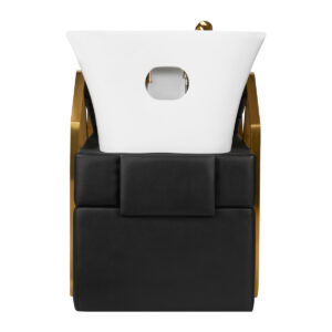 Nowoczesna myjnia fryzjerska marki Gabbiano to połączenie funkjonalności z włoska elegancją. Myjnia wykonana jest z najwyższej jakości materiałów i doskonale wykończona. Wiemy jak ważny jest komfort klienta podczas zabiegów, dlatego specjalna konstrukcja zapewnia klientowi solidne podparcie głowy w czasie mycia. Miękkie i niezwykle wygodne siedzisko pokryte jest wysokiej jakości ekoskórą w kolerze szarym. Myjnia posiada białą misę ceramiczną i podłokietniki w kolorze złotym. Idealny mebel do nowoczesnych wnętrz.