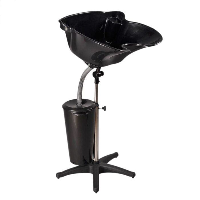 Myjka z głęboką misą wykonana jest z wysokiej jakości tworzywa sztucznego, które można łatwo wymyć z resztek farb i włosów. Dodatkowo misa myjki posiada wygodną regulację kąta nachylenia za pomocą śruby oraz otwór odpływowy z wężem do odprowadzania wodę bezpośrednio do zbiornika umieszczonego na regulowanym statywie.