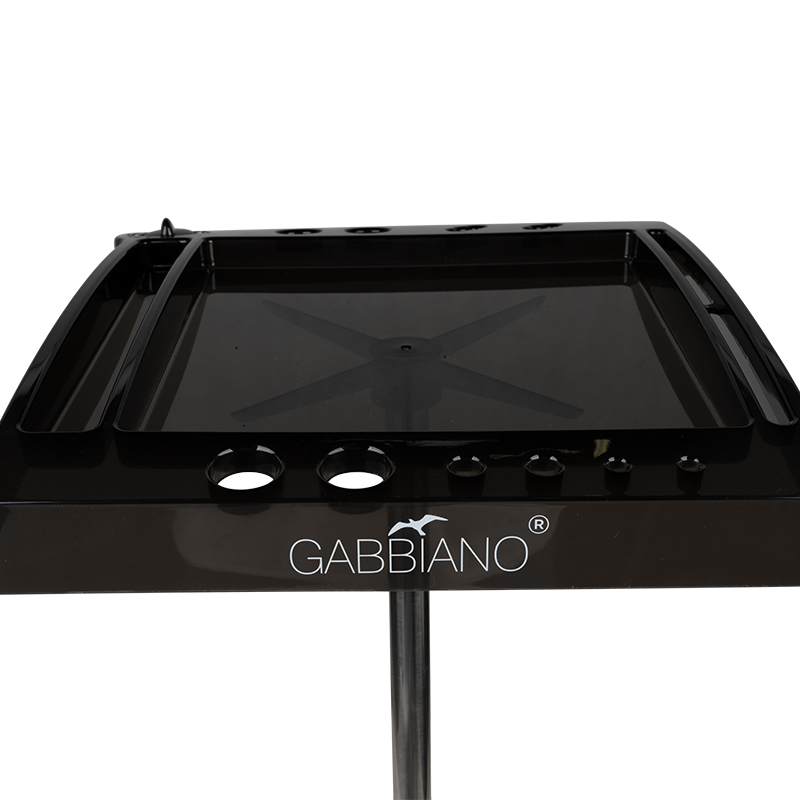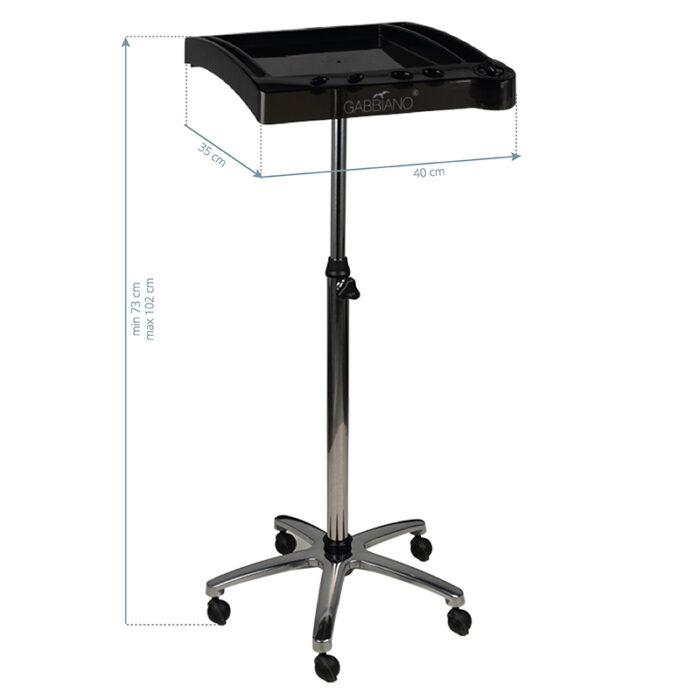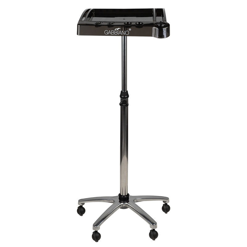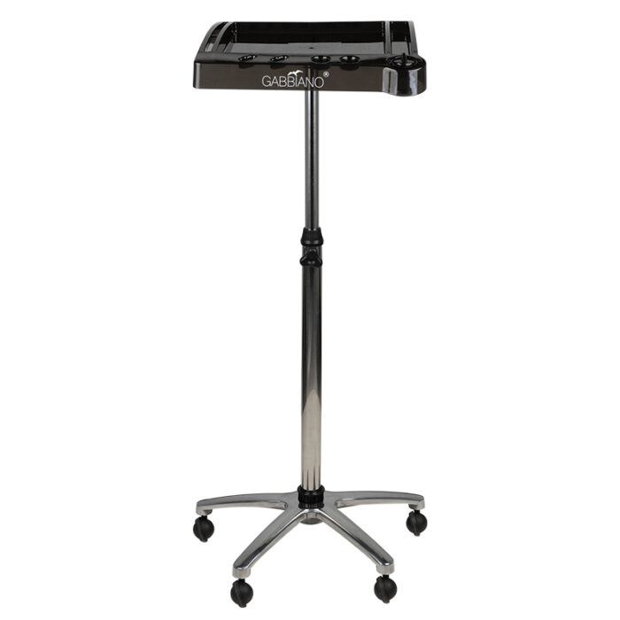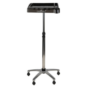 Pomocnik fryzjerski w kolorze czarnym. Stablina konstrukcja zapewni długotrwałe użytkowanie. Stolik osadzony na kółkach, dzięki którym narzędzia będą zawsze pod ręką.