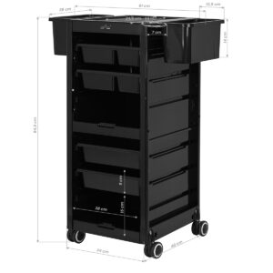 Prosta stylistyka pomocnika sprawia, że sprawdzi się on w każdym wnętrzu. Wykonany z łatwego do utrzymania w czystości, trwałego materiału mebel w odcieniach czerni znacząco usprawni pracę w każdym salonie urody. Gumowane kółka zapewniają mobilność, pozwalając na swobodne i płynne przestawianie w zależności od potrzeb – w trakcie zabiegów wokół fotela fryzjerskiego czy też odstawianie po wykonanej usłudze. W razie potrzeby mogą być również w łatwy sposób zdemontowane. Pomocnik ten sprawdzi się zwłaszcza u osób, które bardzo cenią sobie funkcjonalność.
