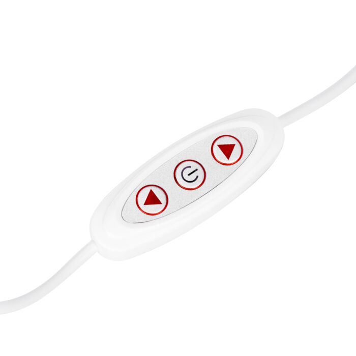 Natężenie można płynnie dostosowywać przy użyciu pilota umieszczonego na przewodzie zasilającym. Regulacja pozwala zadbać o dokładne oświetlenie miejsca zabiegowego w każdym momencie. Daje to ogromne możliwości dopasowania oświetlenia do indywidualnych potrzeb oraz wykonywanych w danym momencie usług. Tym samym poprawia efektywność i dokładność pracy, nie wzmagając przy tym przemęczenia wzroku.