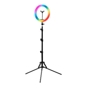 Pilot na przewodzie umożliwia skokową regulację temperatury barwowej w szerokim zakresie zimne-pośrednie-ciepłe (od 3000 do 6000 K) oraz kontrolę natężenia światła w 12 poziomach. Funkcjonalność ta zapewnia dodatkową elastyczność podczas użytkowania lampy. Montaż na solidnym statywie gwarantuje komfort pracy w salonie kosmetycznym, studiu tatuażu czy w domu. Dodatkowo wewnątrz pierścienia lampy znajduje się adapter gwintowy umożliwiający montaż elastycznego uchwytu do telefonu, który jest zawarty w zestawie i – umożliwiając rozszerzenie zacisku do maksymalnie 15 cm – pasuje do większości smartfonów dostępnych na rynku.