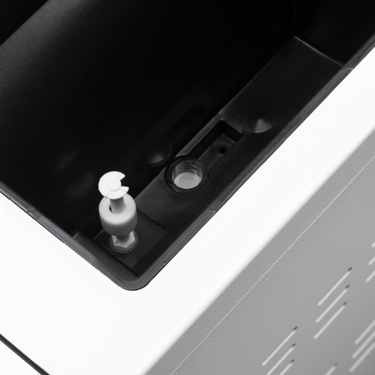 Wbudowane zbiorniki na czystą i zużytą wodę | Zbiornik na czystą wodę jest przeznaczony na destylowaną lub dejonizowaną wodę, która posłuży do sterylizacji. Obecność zbiornika na zużytą wodę sprawia, że nie potrzebujemy pamiętać o zewnętrznym pojemniku. |