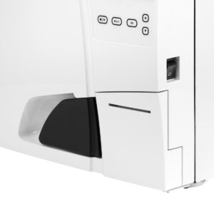 Wbudowane zbiorniki na czystą i zużytą wodę | Zbiornik na czystą wodę jest przeznaczony na destylowaną lub dejonizowaną wodę, która posłuży do sterylizacji. Obecność zbiornika na zużytą wodę sprawia, że nie potrzebujemy pamiętać o zewnętrznym pojemniku. |
